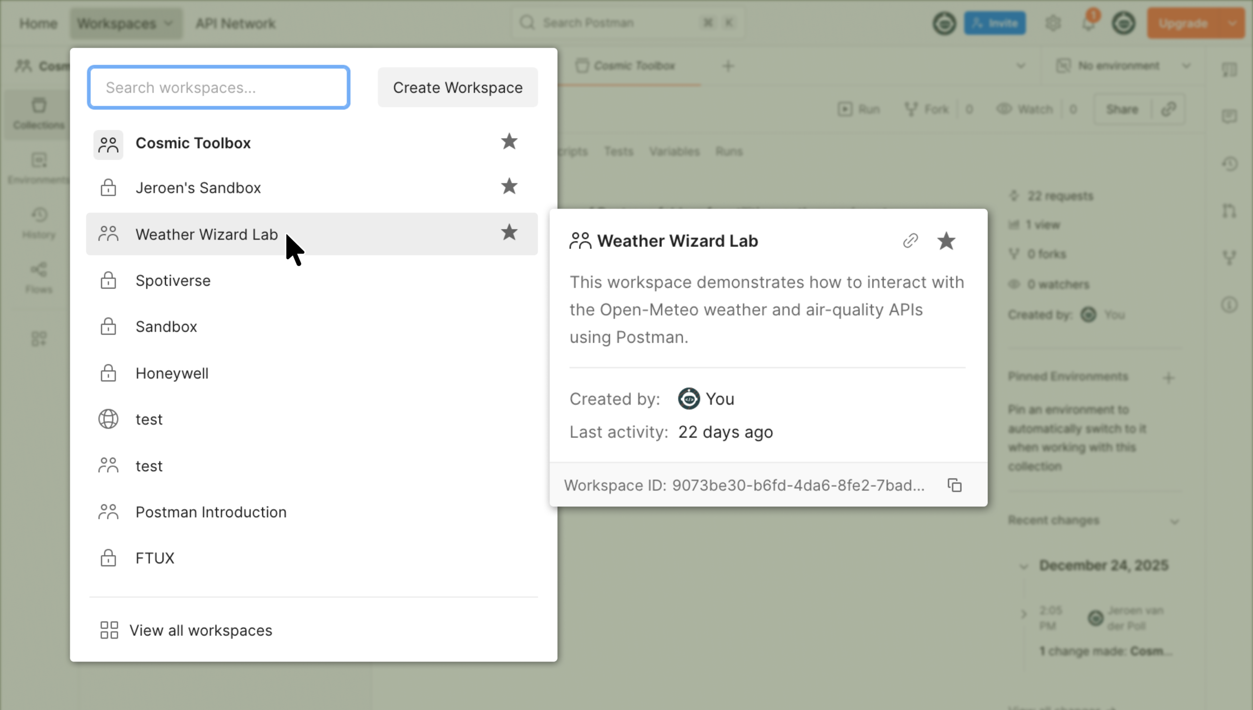Starring gives users a simple way to elevate the workspaces they rely on most. Starred workspaces now appear first in the switcher and receive priority in search and forking flows.