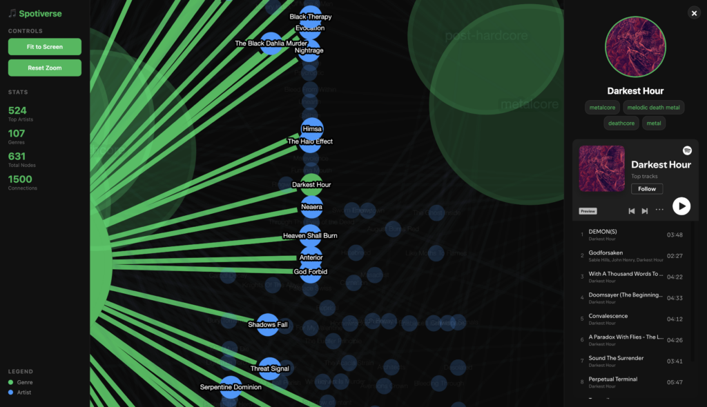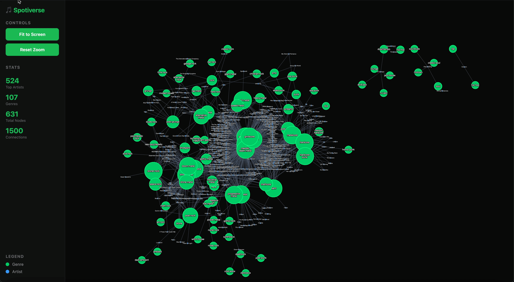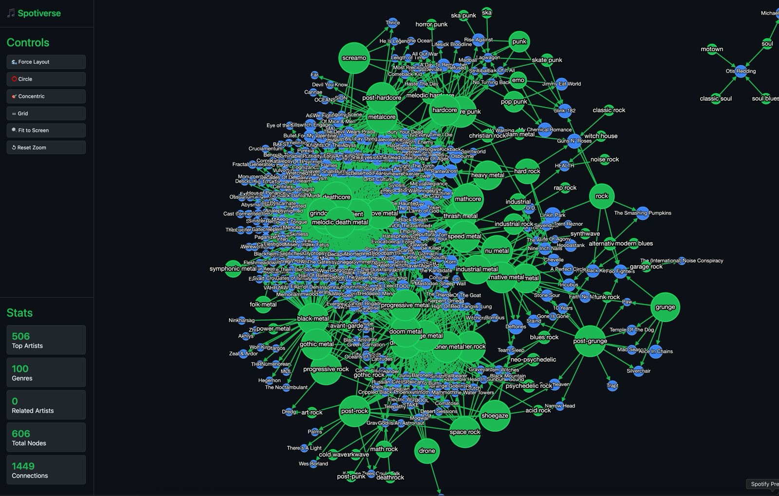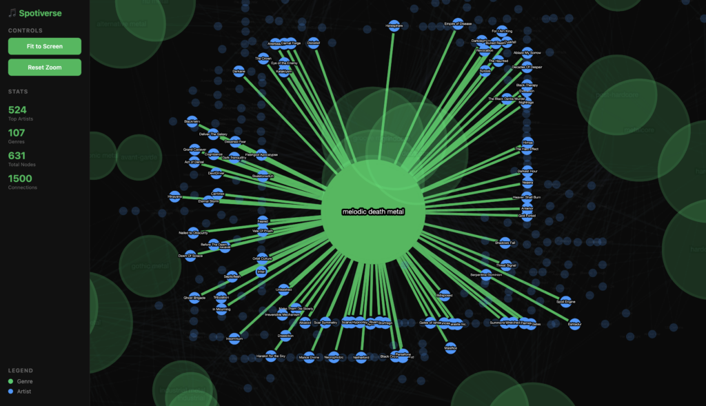 The first Spotiverse prototype showed promise, Spotify had became a visual map.