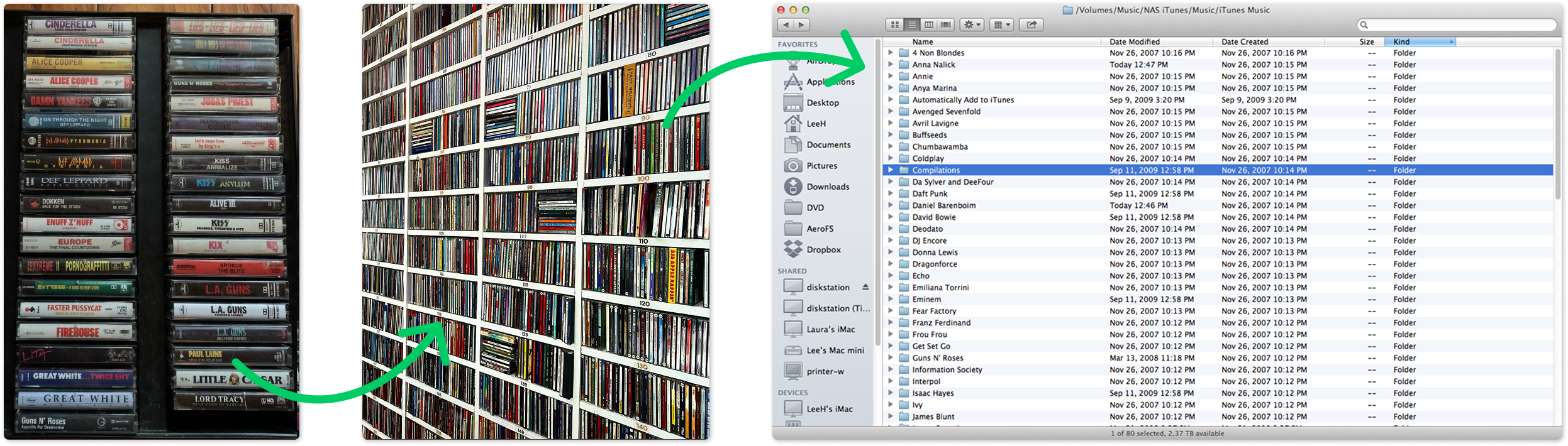 From physical collections to digital libraries. Each step made music easier to collect, but harder to navigate.