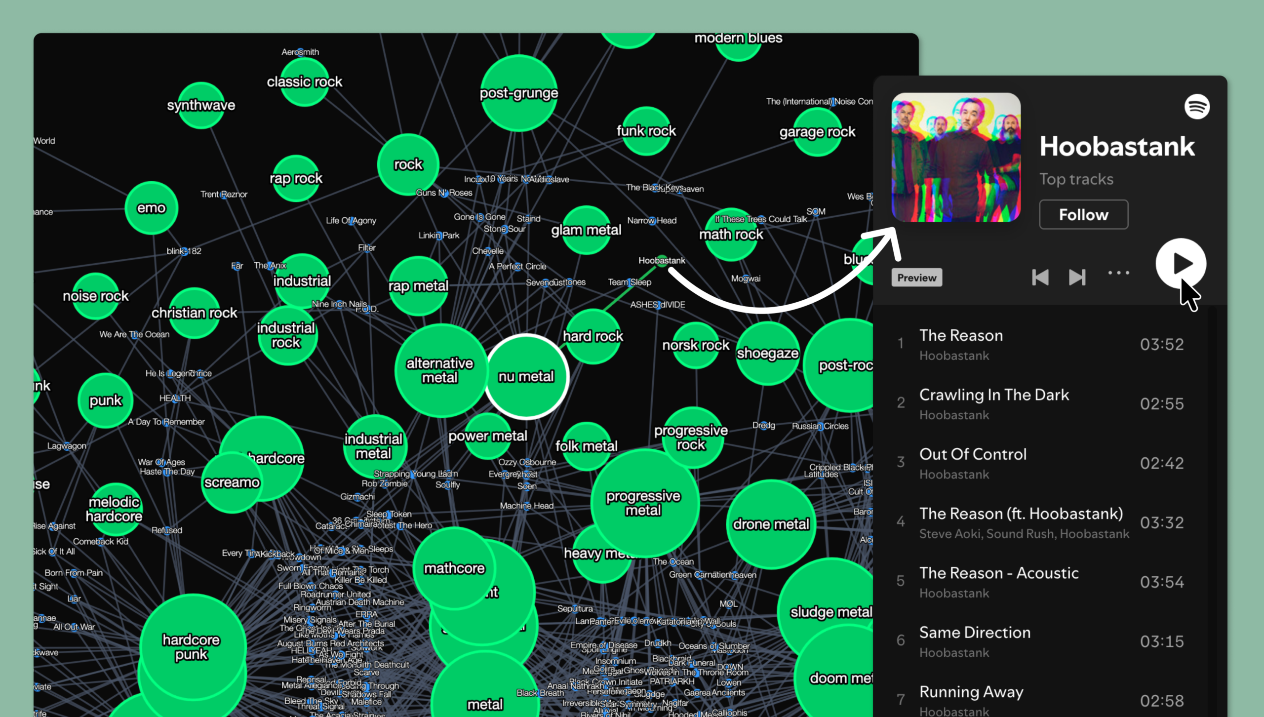 I’m a heavy Spotify user. On average, I listen to 3 hours of music a day. I follow over 500 artists, which turns into a long sequence of names without context. No genres, no relationships, no sense of proximity. When I want to listen to music, I often know the direction I’m in the mood for, but not the exact artist or album. Choosing what to play starts to feel oddly familiar, in the same way it once did with mp3s.